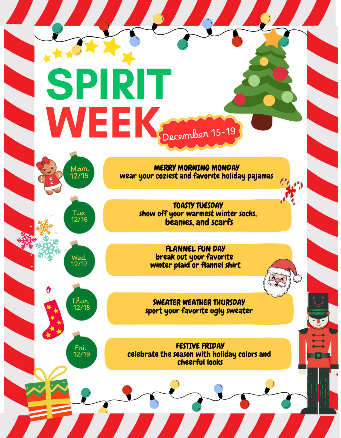 Spirit Week December 15 to December 19